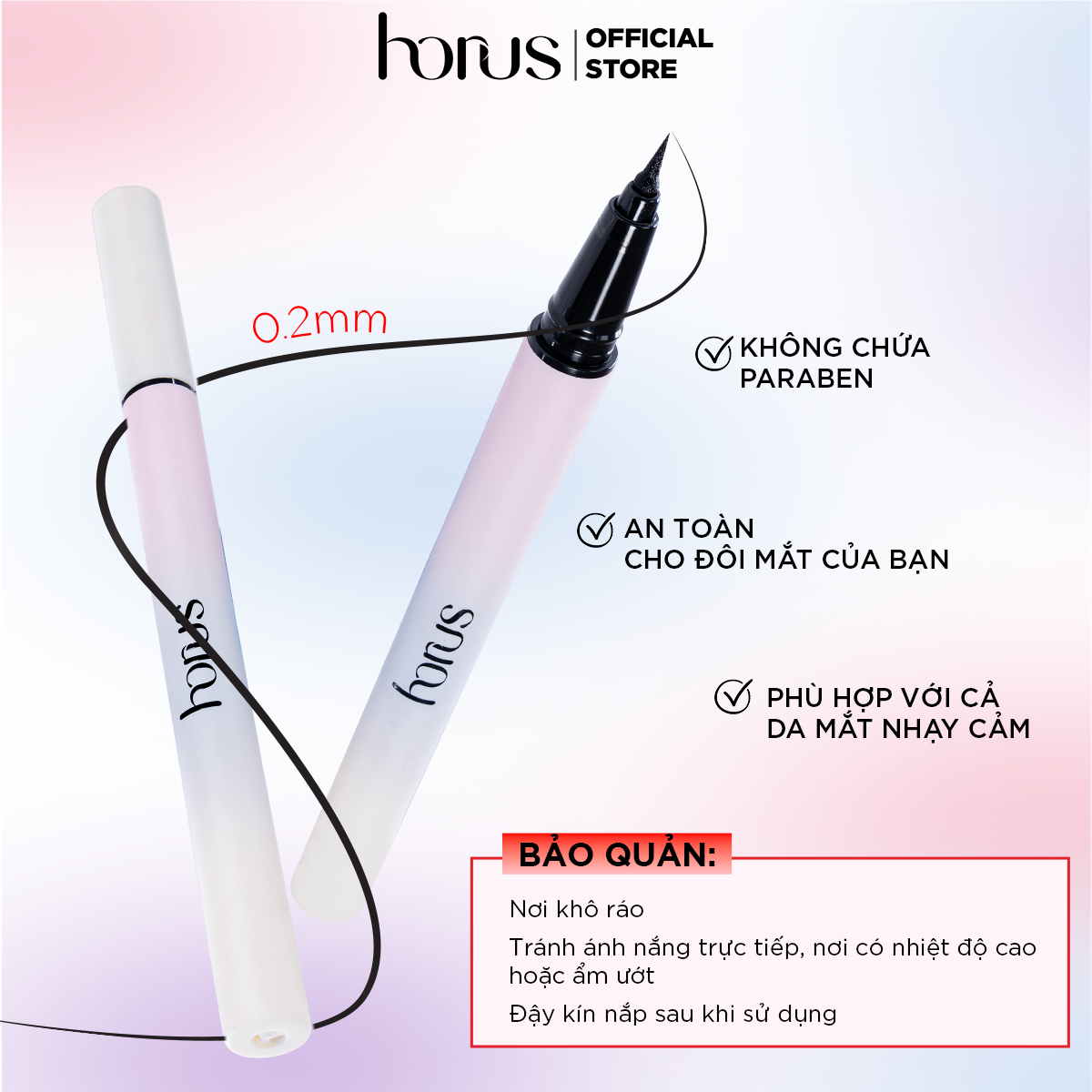 Horus Waterproof Eyeliner với ngòi dạ siêu mảnh được thiết kế dành cho những đường kẻ mắt sắc
